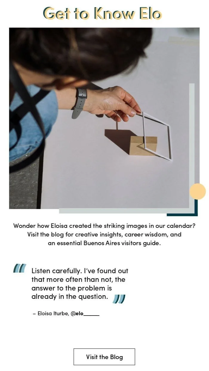 I brought an editorial feel to Poketo’s emails, illuminating the brand’s dedication to art and artists with layered stories to enrich product offerings for the cursomer.